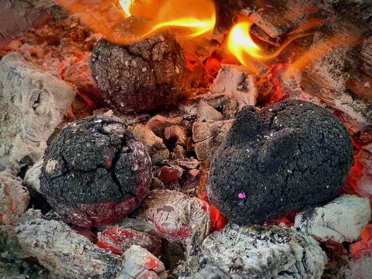 火を残す場合は、灰に埋めて酸素供給を減らしゆっくり燃焼させる。極力触らずに形を維持する