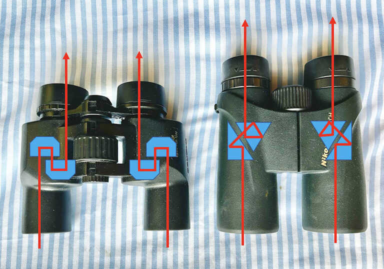 さて、双眼鏡を選ぶ前に、もうひとつ知っておいてほしいのが双眼鏡の構造です。双眼鏡は内部のプリズム構造によって、ポロプリズム式とダハプリズム式に分けられます。この違いは、単なる設計の違いではなく、見え味や価格、携行性にも影響します。