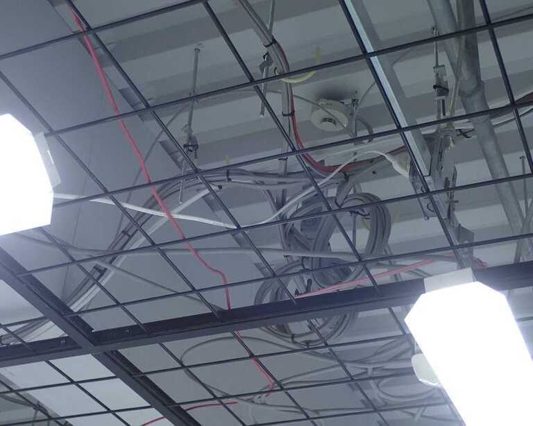 続いて、見え味や視野の広さを見ます。家電量販店の売り場は照明が明るいため、ひとみ径や明るさの違いをそのまま比較することは難しいかもしれません。その場合は、売り場の中で少し離れた天井の配線などを見て、周囲まで余裕をもって見渡せるかを確認すると、体感的な違いがわかりやすくなります。