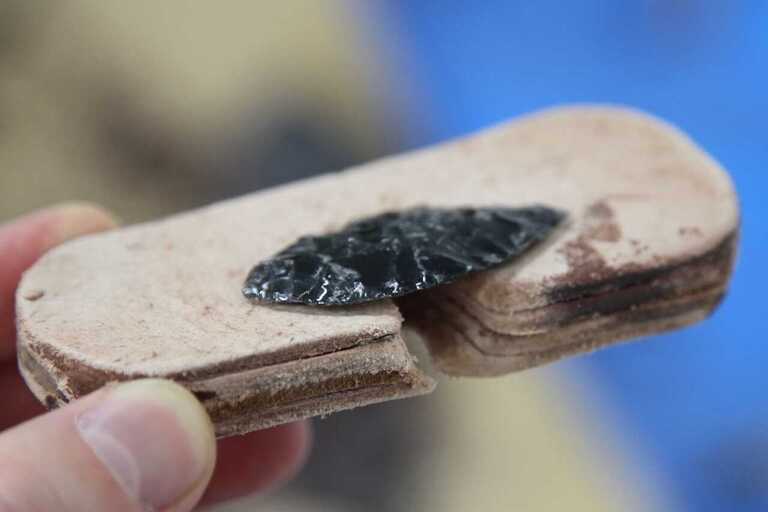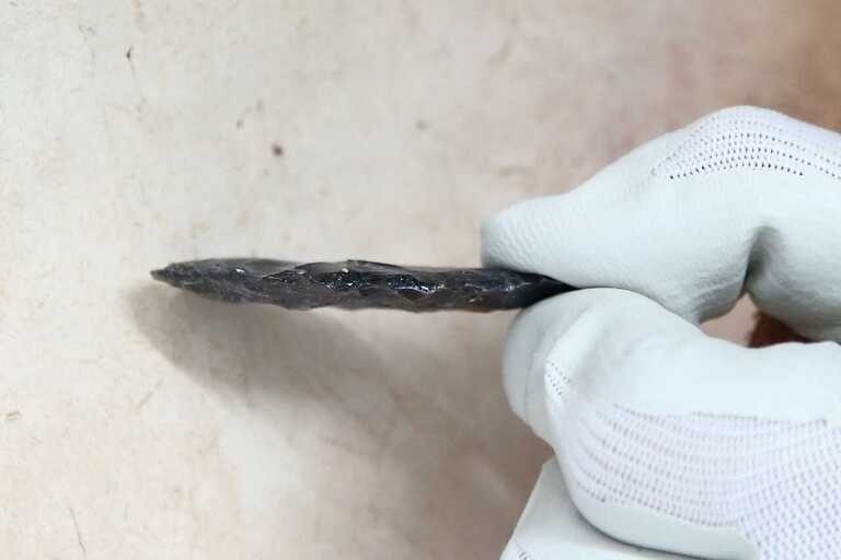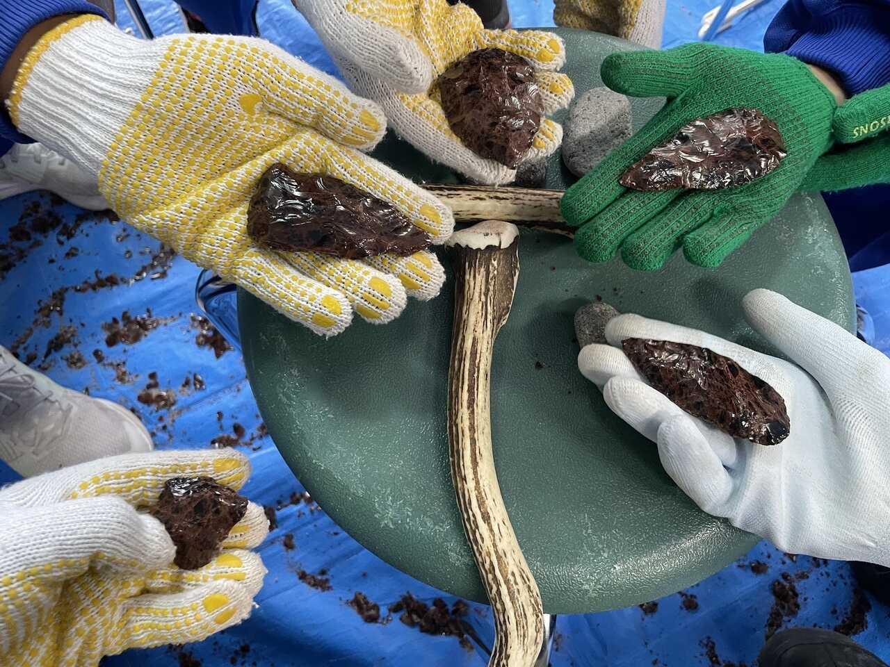 黒曜石からつくった石器はたいへん鋭いので、完成後の扱いには注意が必要です。また、不要になったからといって野外に捨てることも厳禁です。危ないことはもちろん、拾った人がふるい時代につくられたものと勘違いしてしまうかもしれません。