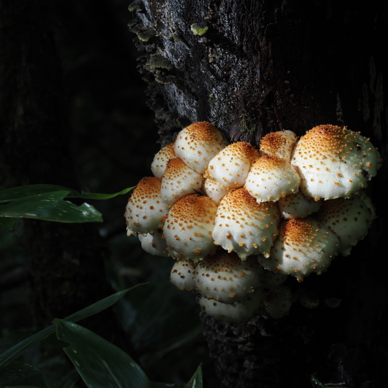 スギタケ だと思います。ネットで見ると食用可とありますが、アルコールと同時摂取で毒性の報告もあるみたいですね。セイロで蒸された中華の点心の表面をバーナーで炙ったかのような怪しい魅力が凄い。食べんけど
