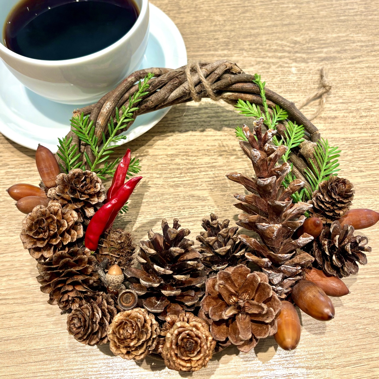最初のつるを編むところは難しくて失敗しましたが、飾りが綺麗に付けれたのでとても満足です。