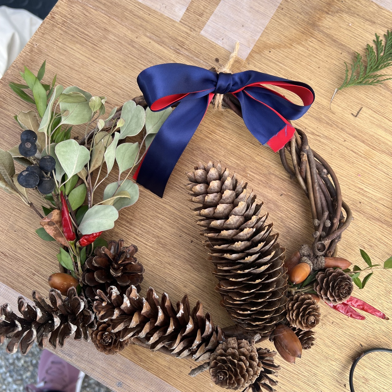 ご参加いただき、ありがとうございました。大きなまつぼっくりを、上手に飾れましたね。