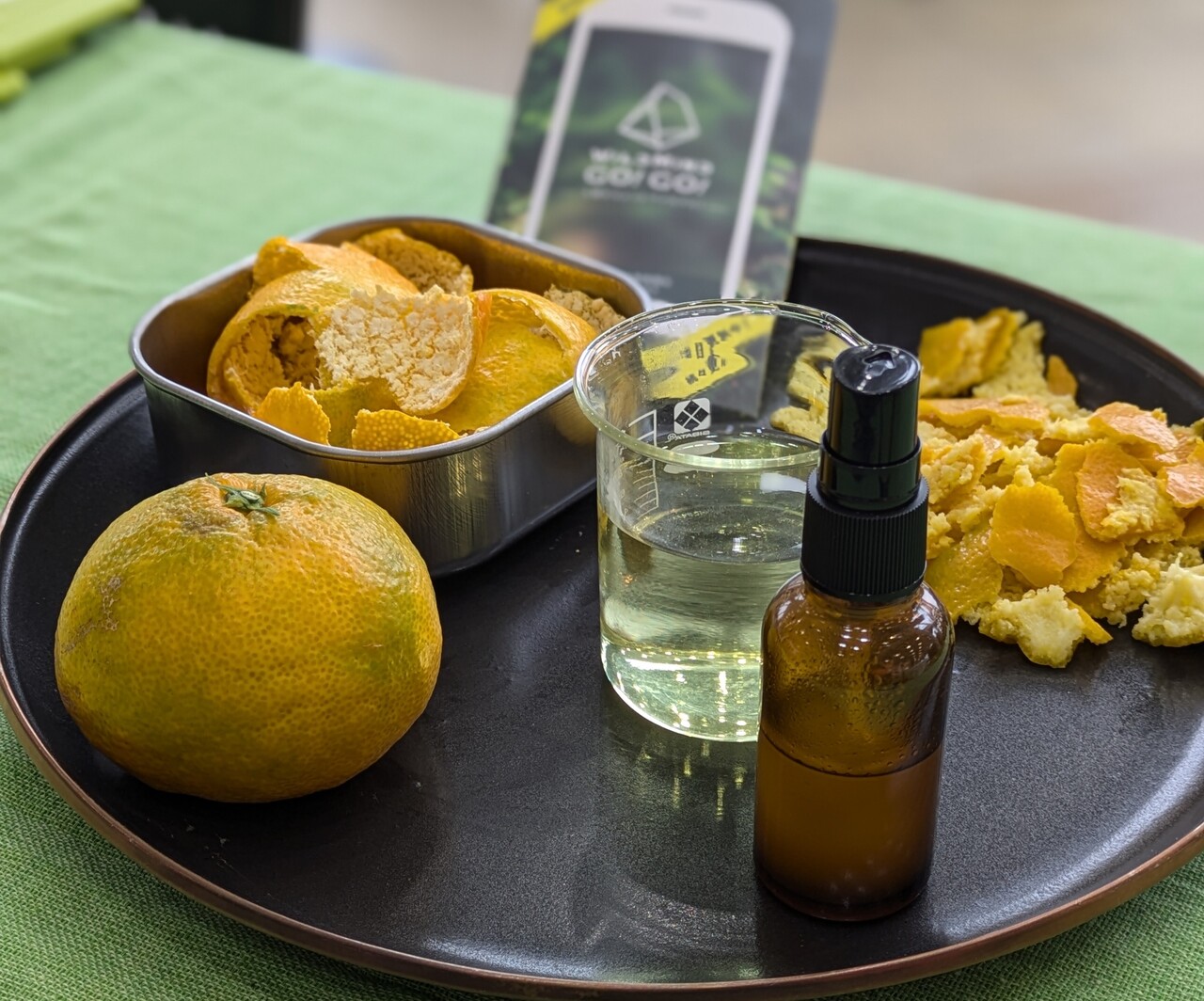 10月25(土)東京都武蔵村山市の「イオンモールむさし村山 」にて、都市部の自然環境にまつわる仕事に従事する(株)BiotopGuild代表の三森典彰さんを講師にお招きして、小林農園さんの武蔵村山産の東京狭山みかんからアロマエッセンスを抽出するワークショップを行ないました。