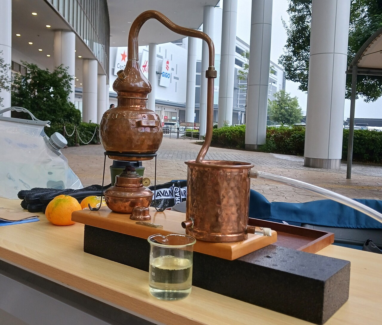 アランビックと呼ばれる銅製の蒸留器を使ったエッセンスの抽出法もご紹介していただきました。