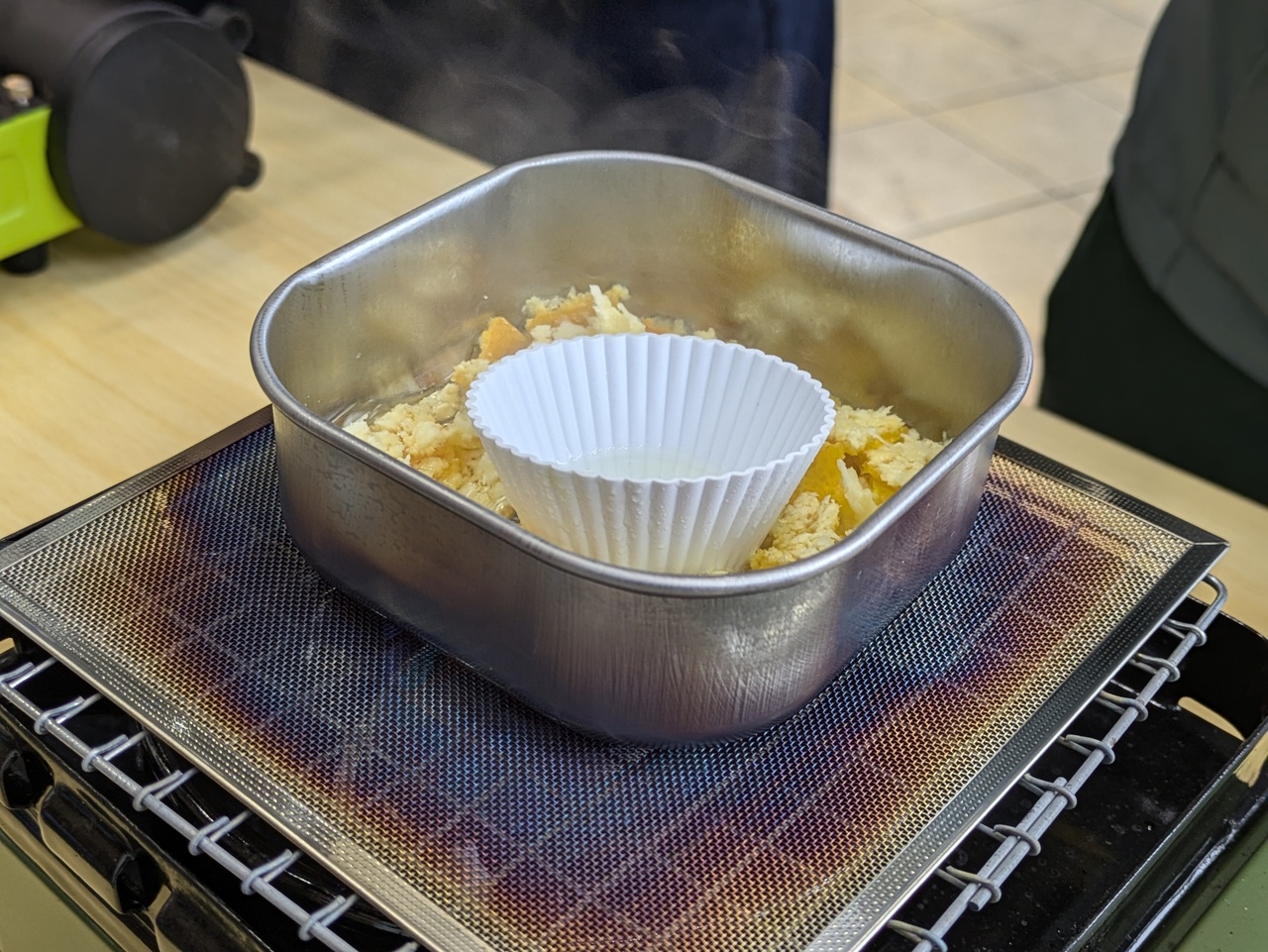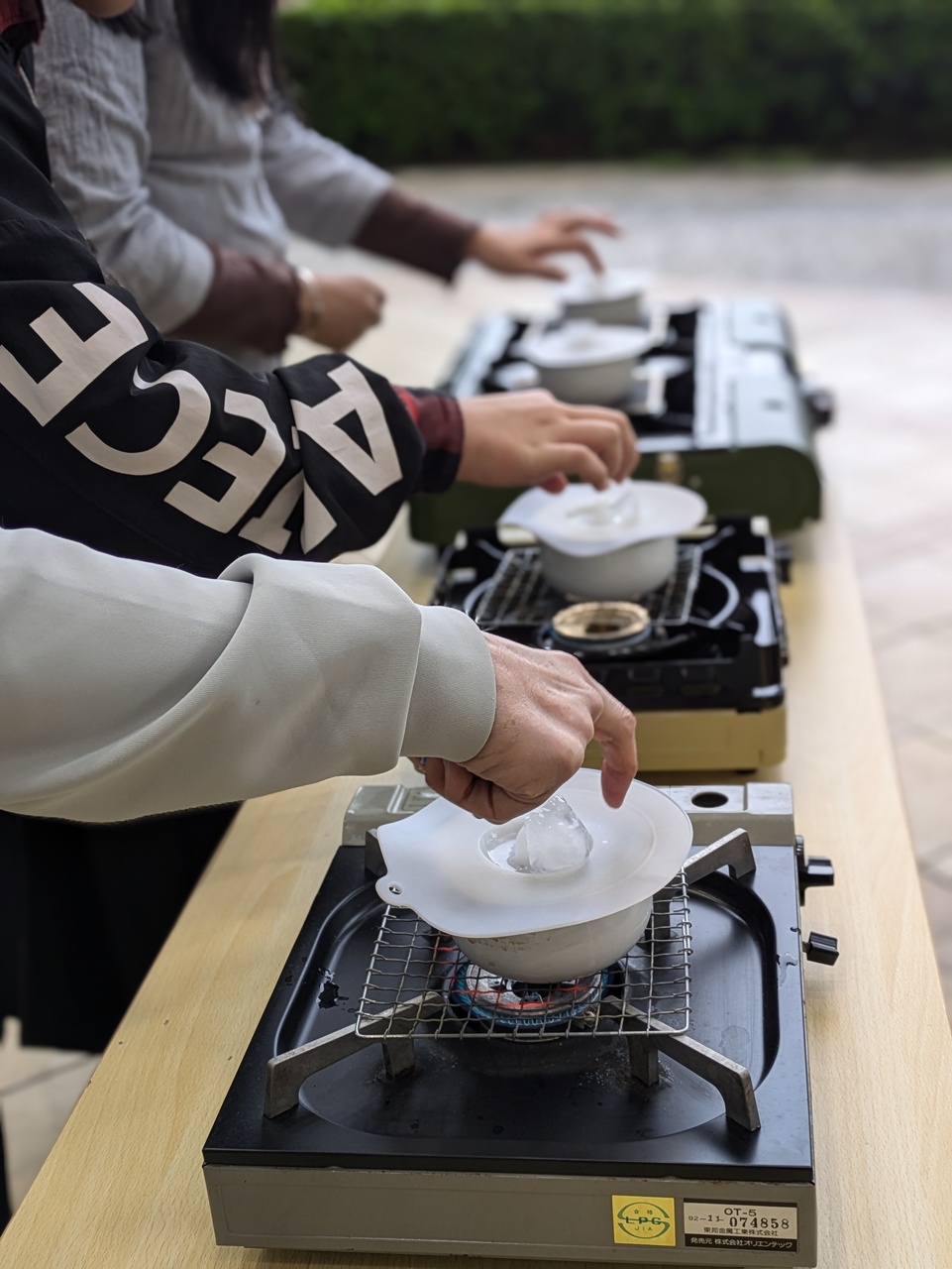 今回のイベントでは、家庭にある調理器具で手軽に香りのエッセンスを集める「水蒸気蒸留法」を体験しました。
