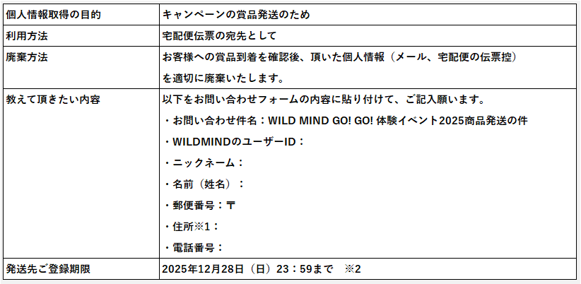 「WILD MIND GO! GO!」体験イベント2025 プレゼントキャンペーン!