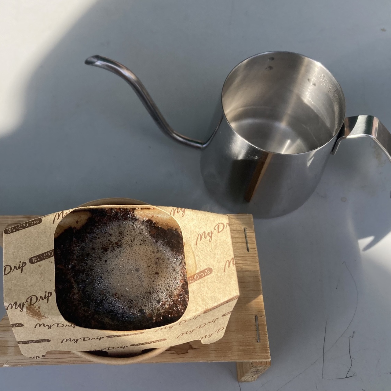 挽きたての香りが会場に広がる中、焙煎したての豆をミルで挽き、ドリップ用フィルターにセットしていきます。宮原さんの指導のもと、まずフィルター全体にお湯をたっぷりと注ぎ、続いて少しずつお湯を絞るように注ぐテクニックを実践。約3分間の抽出時間を経て完成したコーヒーを一口飲んだ参加者からは、「こんなに違うんですね!」「香りが全然違う!」と驚きの声が聞こえてきました。<お客様のやった!レポより><お客様のやった!レポより><お客様のやった!レポより><お客様のやった!レポより>会場にPROTREK Moflin展示